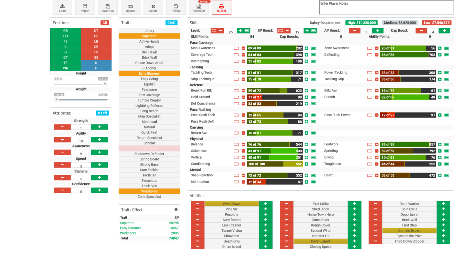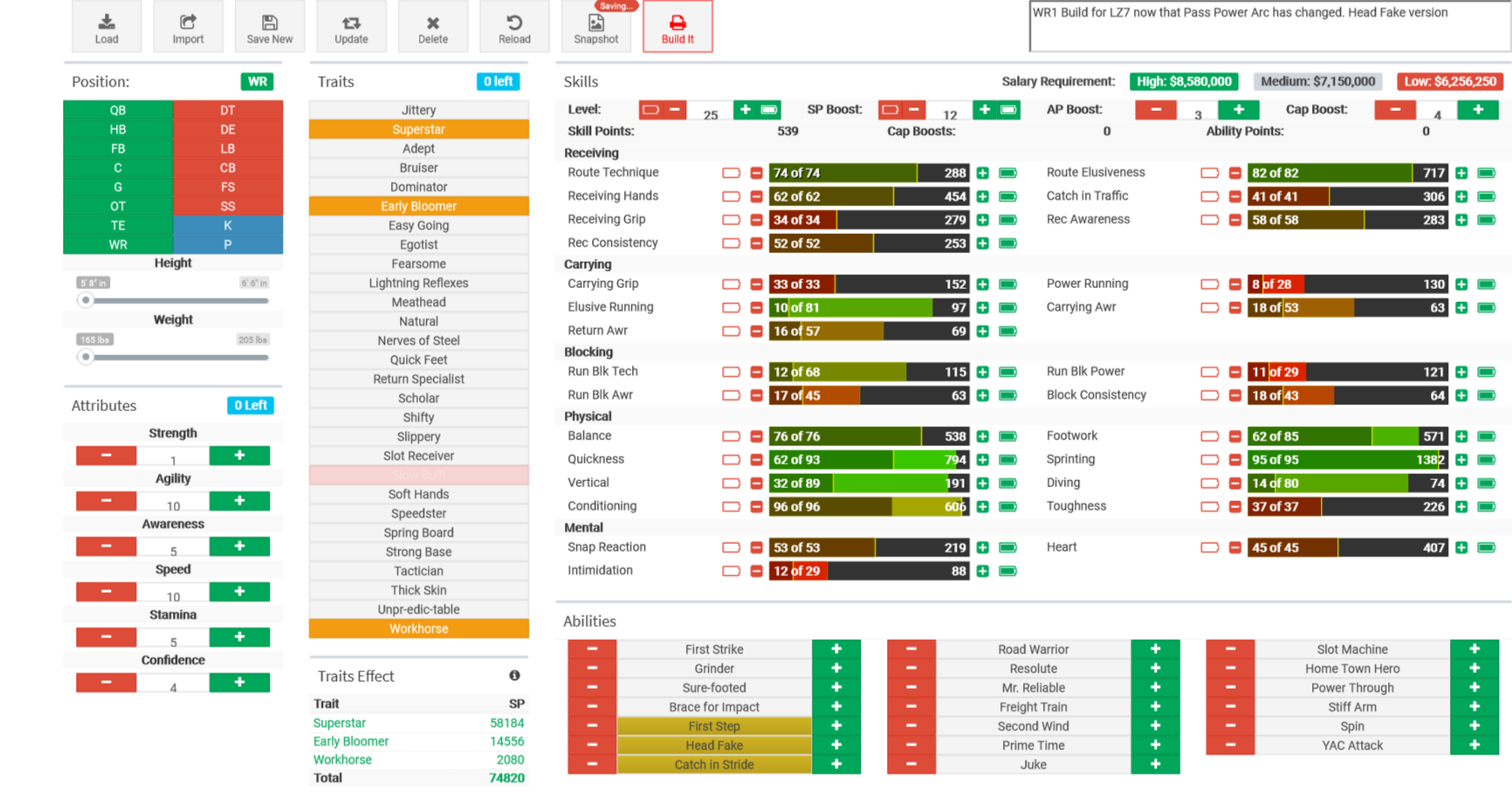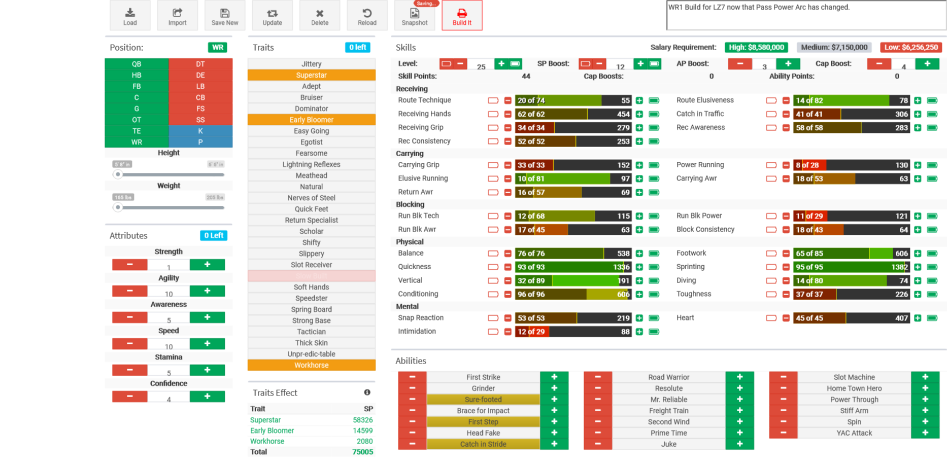 Since I'm 3 seasons away from my LZ7 reset, here's my S* WRs build and S* CB. Feel free to steal/ improve on them.
