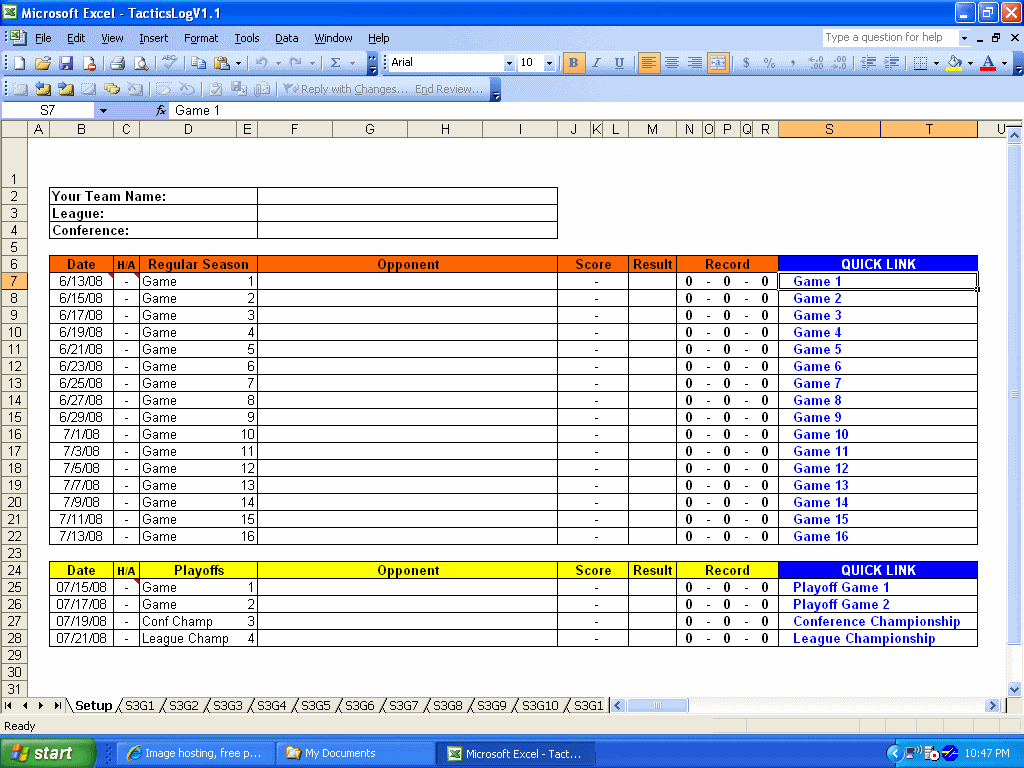 BTW it won't keep track of anything you type in on following worksheets if they are LATER than the date of your game(for that specific sheet). This was put in so that if someone typed something in down the line it wouldn't mess anything up if they happened to forget about it.