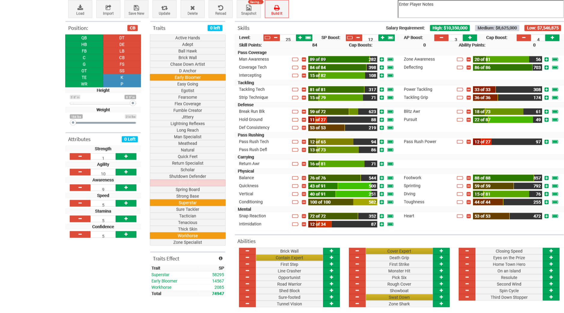 I posted my WR builds for the future. Here are three Man S* CB builds I'm working on tweaking: